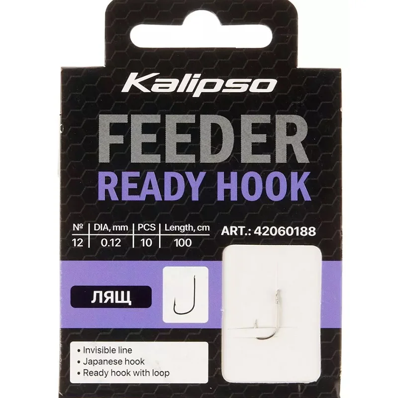 Kalipso Ready Hook - це готовий повідець, створений спеціально для ловлі трьох популярних видів риб — ляща, карася та коропа.nnЗавдяки своїй зручності та легкості монтажу, Kalipso Ready Hook економить час, дозволяючи зосередитися на самій ловлі.nnОсобливістю Kalipso Ready Hook є гачки з антикорозійним покриттям, які забезпечують довговічність та надійність, а також волосінь invisible line, що забезпечує мінімальну видимість у воді та збільшує ймовірність успішного полювання на рибу.