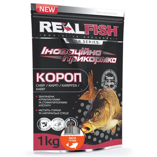 Підгодовування з високим вмістом протеїнів, виготовлене з натуральних інгредієнтів вищої якості, що пройшли спеціальну обробку, що багаторазово посилило смак і аромат цієї суміші. Використовується для лову коропа, карася, линя та ляща в озерах та річках зі слабкою течією. Має у своєму складі великофракційні компоненти, які залучають до місця загодовування велику рибу. Додавання консервованої кукурудзи, кришених та різаних бойлів, патоки чи меляси максимально посилить ефективність підгодовування. Підгодовування із запахом кислої груші підходить для лову коропа починаючи з травня місяця і чудово працює практично до кінця сезону.