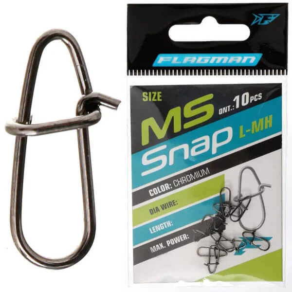 Flagman MS Snap #0000 — миниатюрная, ультралегкая застежка-американка, изготовленная из высокопрочной стальной проволоки диаметром 0,35 мм с антикоррозионным покрытием. С помощью такой застежки можно легко и быстро собрать надежную основную и поводковую оснастку. Длина – 6,3 мм. Разрывная нагрузка – 8,5 кг. В упаковке – 10 шт.