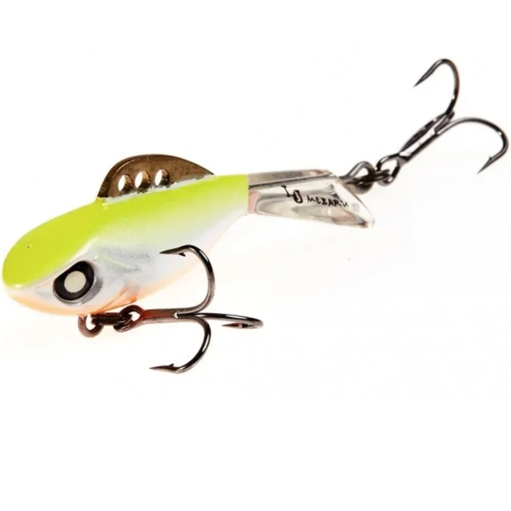 Конструкція балансиру Mebaru має єдиний виливок із морозостійкого та удароміцного ABS-пластику на металевому тілі. Це дуже міцна конструкція, в якій хвіст – одне з приманкою. Він ніколи не відклеїться і не загубиться, особливо якщо це станеться в розпал клювання. Розмірний ряд балансувань Mebaru складається із чотирьох розмірів приманок. Такий широкий діапазон дозволяє ловити рибу практично за будь-яких умов: з плином і без нього і на глибинах майже до 20 метрів. Великий розмір показав свою високу ефективність при лові риби у виска з дрейфуючого човна.