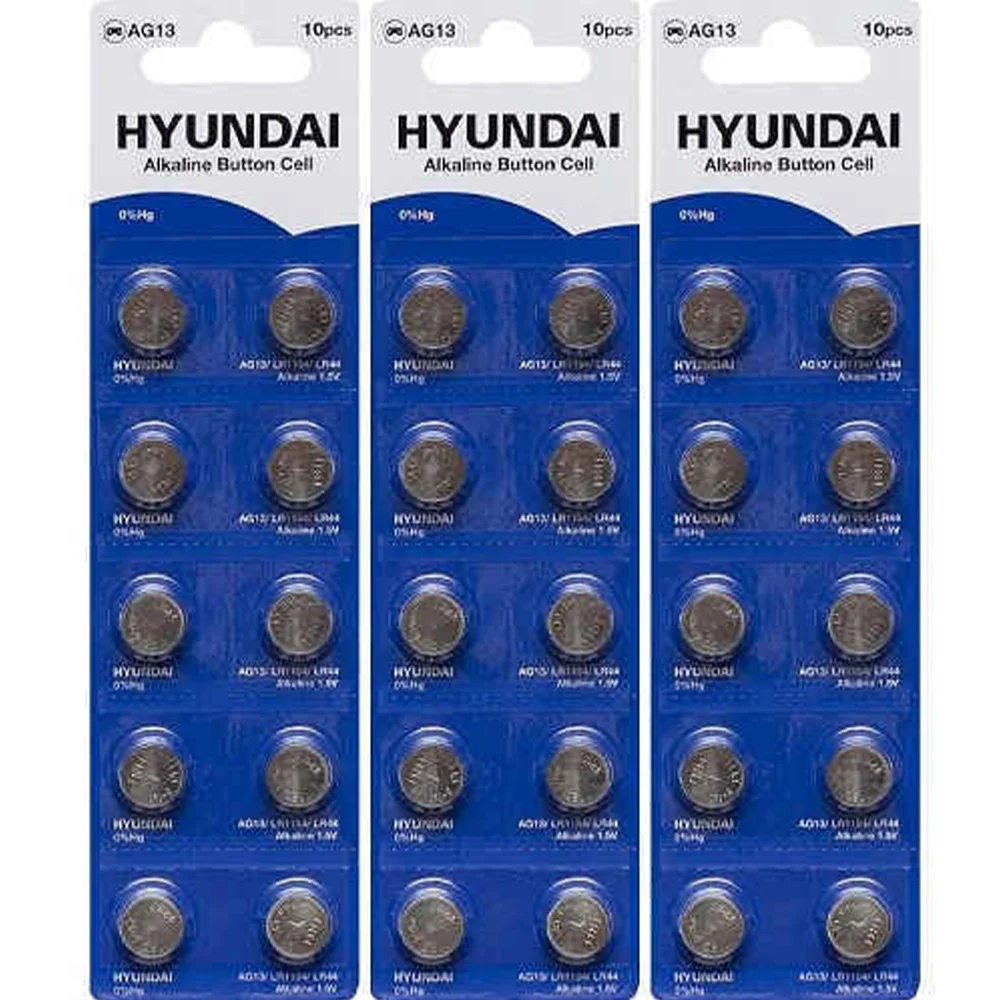 Батарейка HYUNDAI AG13 Blister 10 "таблетка" Плоские батарейки для часов, калькуляторов, alkaline, 1,5