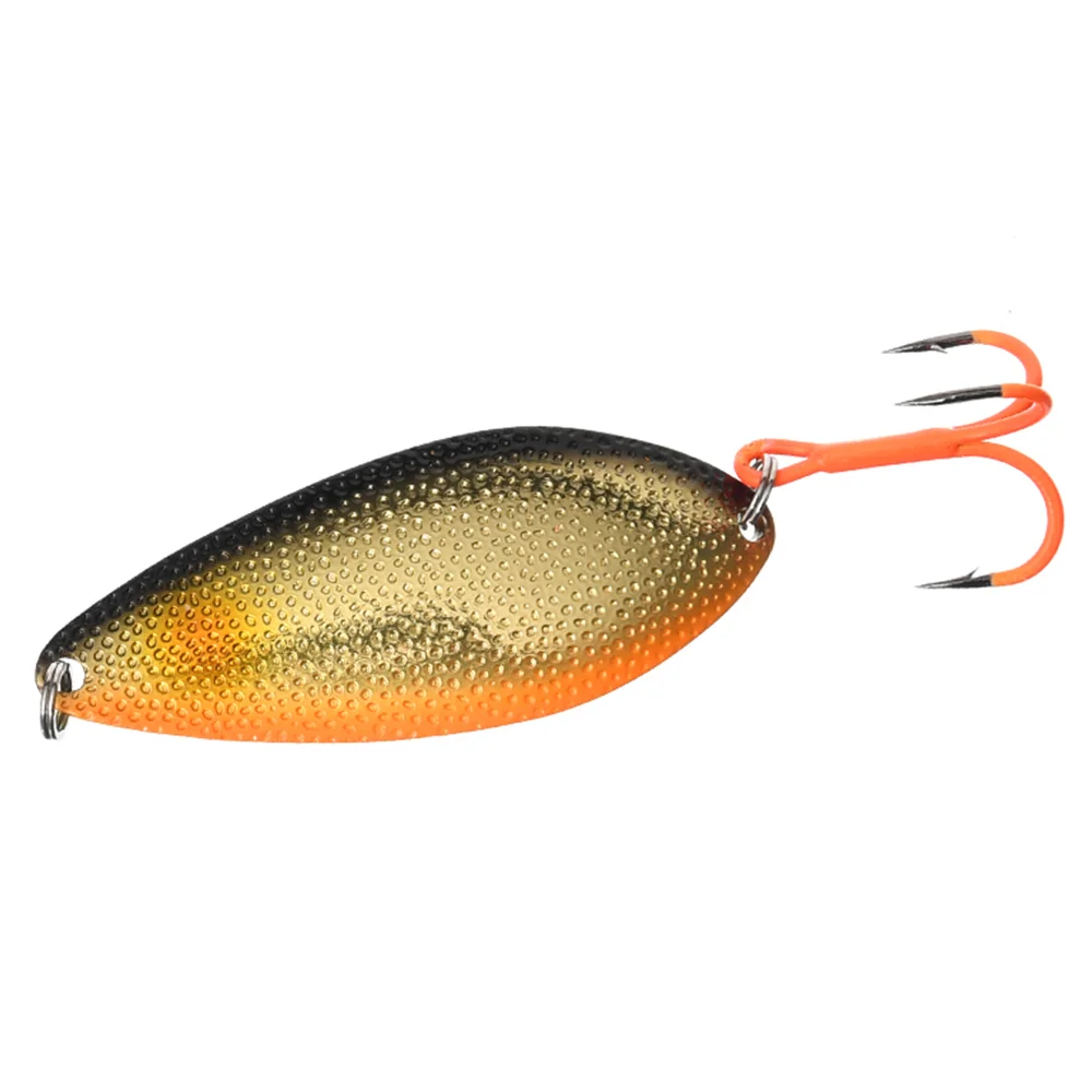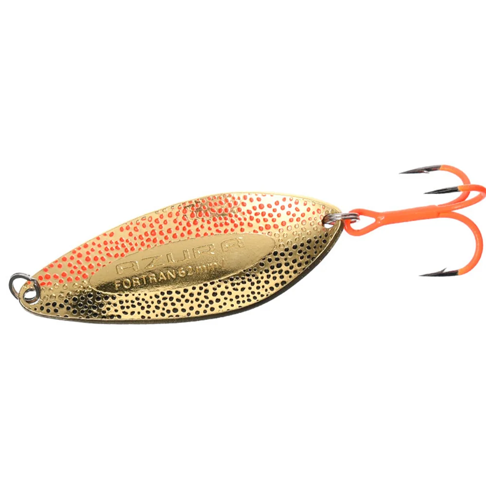 Azura Fortran Flat – серия высокоэффективных колеблющихся блесен, выделяющихся среди прочих классической геометрией и высокой уловистостью. От полюбившейся многим серии Fortran приманки Fortran Flat отличаются более широким телом и выраженным S-образным изгибом. Блесны изготовлены из латуни, имеют многослойное гальваническое покрытие. Благодаря своей форме Azura Fortran Flat обладают активной размашистой игрой даже на небольших скоростях. Приманки отлично держат глубину проводки, имея при этом высокую стабильность игры и отлично показывают себя как на течении, так и в стоячей воде. Колеблющиеся блесны Azura Fortran Flat прекрасно сбалансированы и выделяются хорошими аэродинамическими характеристиками, позволяющими выполнять дальние и точные забросы. Специальное рифление поверхности приманки в виде частых впадин-микроточек создаёт уникальный 3D-эффект объёмного, подвижного и соблазнительно мерцающего тела небольшой рыбки, а также обеспечивает микрозавихрения и турбулентность водного потока вокруг приманки, что привлекает даже самого малоактивного хищника. Каждая блесна Fortran Flat оснащена надёжными заводными кольцами и острейшими тройниками, способными просечь пасть любого трофея. В зависимости от размеров блесны, кроме вездесущей щуки, в вашем улове будут практически все хищники наших вод: форель, крупный окунь, жерех, судак, сом и т.п. Все блесны изготовлены на высокотехнологичном оборудовании, позволяющем добиться 100% повторяемости изделий, и прошли тщательное тестирование профессиональными экспертами компании Azura.