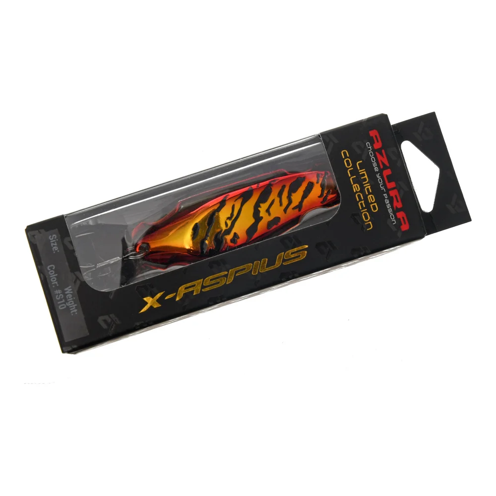 Блесны Azura X-Aspius Limited Collection – серия высококлассных колеблющихся блесен удлинённой зауженной формы, выполненных из латуни и изготовленных ограниченной партией. Эта универсальная приманка изначально создана для ловли жереха на быстром течении, однако показывает отличные результаты и по другим хищникам. Благодаря своей прогонистой форме и уникальному профилю блесна Azura X-Aspius обладает активной игрой, создавая на средней и быстрой скорости проводки мощные низкочастотные колебания и блики, привлекательные для любого речного хищника. Приманка отлично сбалансирована, прекрасно держит течение, сыплется на паузе, отличается высокой стабильностью игры и обладает выдающимися аэродинамическими характеристиками, позволяющими выполнять дальние и точные забросы, т.е. не только работать по площадям, но и доставать до самой осторожной рыбы. Специфическая рельефная внешняя поверхность блесны не только делает привлекательным её внешний вид, но и создаёт во время проводки уникальные мерцающие блики и микрозавихрения воды, вызывающие у хищных рыб плотоядный интерес и провоцирующие их на атаку. Блесна достаточно универсальна и показывает прекрасные результаты как на быстрых и средних, так и на медленных скоростях проводки, причём не только на плёсах и перекатах, но и в самом «бурле» – на разных по силе и направленности струях речного потока. В списке её трофеев жерех, щука, окунь, голавль, судак, лосось и прочие хищники. Колебалки Azura X-Aspius Limited Collection – это ещё один пример удачного объединения проверенных временем классических подходов к созданию спиннинговых приманок и высокоточных технологий. Блесны оснащены надёжными заводными кольцами и острейшими тройниками. Доступны в широком спектре уловистых окрасок и развесовке 4.5, 8, 14, 18 и 25 г.