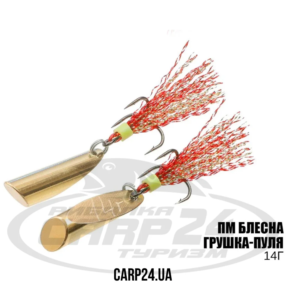 Блесна Грушка-Пуля - очень популярная и уловистая приманка. На нее можно поймать как привычных хищников: судака, щуки, окуня, сома, жереха так и мирных рыб: карпа, карася, толстолоба, леща и.т.д. Грушка-пуля работает в любое время года, потому что подходит не только для охоты по открытой воде, но и зимой, из льда при вертикальной анимации демонстрирует соблазнительную игру. Для избегания запутывания и раскрытия всего потенциала приманки, следует грушку-пулю монтировать, с крючком в положении косого среза на блесне. Изготовляется приманка из латуни, и оснащается качественным тройником с опушкою в виде люрекса, для предоставления объему на каждой блесне люрекс дополнительно рыхлится вручную. Идеально отполированная поверхность блесны блестит в солнечных лучах, что помогает привлечь хищника из большего расстояния. Благодаря двум косым срезам центр тяжести смещен к нижней части, потому Грушка-пуля демонстрирует непревзойденные полетные характеристики. Блесна не прихотлива к стилю анимации, или обычный взброс или ступенчатая проводка красиво провоцируют большинство рыбы, но не забывайте о паузах, большинство клевов происходят именно на дне. Грушка стабильно играет как в стоячем водоеме, так и на течении.