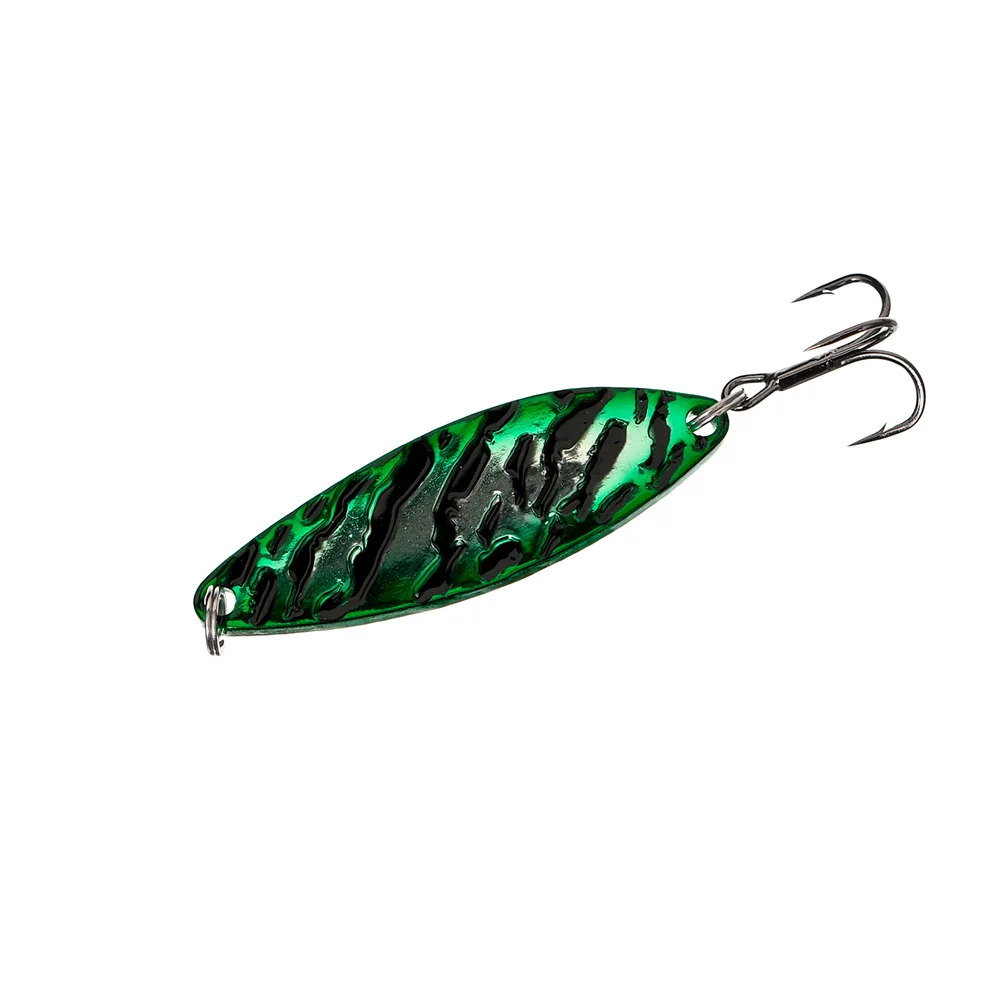 Блесны Azura Razer – серия высококлассных колеблющихся блесен удлинённой зауженной формы, изготовленных из латуни. Благодаря своей форме и уникальному профилю блесна Azura Razer обладает достаточно активной компактной игрой, при которой в основном работает её задняя часть, создавая мощные низкочастотные колебания, привлекательные для любого хищника. Блесна создавалась для ловли на быстрых реках, поэтому прекрасно держит течение, не всплывает на поверхность и отличается высокой стабильностью игры. В то же время заливы рек, озера, протоки и водохранилища без течения также являются вотчиной этой приманки, собирающей и здесь богатую дань! Приманка отлично сбалансирована, отлично держит глубину проводки и обладает невероятными аэродинамическими характеристиками, позволяющими выполнять дальние и сверхдальние забросы, т.е. не только работать по площадям, но и доставать до самой осторожной рыбы. Специфическая рельефная внешняя поверхность блесны не только делает привлекательным её внешний вид, но и создаёт во время проводки мерцающие блики и микрозавихрения воды, вызывающие у хищных рыб оживлённый интерес и провоцирующие их на мгновенную атаку. Блесна очень универсальна и показывает феноменальные результаты уловистости как на медленных и средних, так и на высоких скоростях проводки. В списке её трофеев щука, окунь, жерех, голавль, судак, лосось и прочие хищники. Колебалки Azura Razer – прекрасный пример объединения проверенной временем японской классики и современных технологий. Приманки оснащены надёжными заводными кольцами и острейшими тройниками, доступны в широком спектре уловистых окрасок, в длине 54, 58, 62 мм и развесовке 14, 16, 21 г соответственно.
