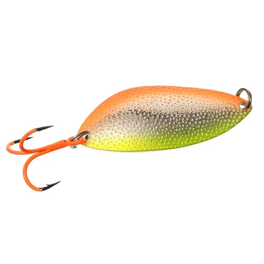 Azura Fortran – настоящая гроза хищников, выделяющаяся среди прочих классической геометрией и высокой уловистостью. Тело приманки изготовлено из латуни и имеет многослойное гальваническое покрытие. Благодаря своей форме Azura Fortran обладает активной размашистой игрой даже на небольших скоростях проводки. Это универсальная приманка, она отлично держит глубину проводки и отличается высокой стабильностью игры. Прекрасно показывает себя и на течении, и в стоячей воде. Блесна отлично сбалансирована и выделяется хорошими аэродинамическими характеристиками, позволяющими выполнять дальние и точные забросы. Специальное рифление поверхности приманки в виде частых впадин-микроточек создаёт уникальный 3D-эффект объёмного, подвижного и соблазнительно мерцающего тела небольшой рыбки, а также обеспечивает микрозавихрения и турбулентность водного потока вокруг приманки, что особенно привлекает даже малоактивного хищника. Блесна Fortran оснащена надёжными заводными кольцами и острыми тройниками, способными просечь пасть любого трофея. В зависимости от размеров блесны Azura Fortran, кроме вездесущей щуки, в вашем улове будут практически все хищники наших вод: форель, окунь, жерех, судак, сом и т.п.