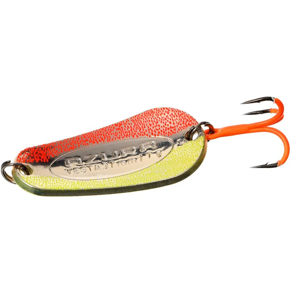 Azura Vesta – настоящий фаворит по ловле хищной и полухищной рыбы. Тело приманки, изготовленное из латуни, имеет небольшие размеры, но довольно высокий удельный вес, что позволяет ловить рыбу на течении и достаточно больших глубинах. При внешне простой форме блесна Azura Vesta отлично держит глубину проводки и обладает уникальной способностью сохранять устойчивость даже на сильном течении. Приманка отлично сбалансирована, выделяется соблазнительной размашистой игрой и прекрасными аэродинамическими характеристиками, позволяющими выполнять дальние и точные забросы. Рифлёная внешняя поверхность создаёт во время проводки мерцающие блики и микрозавихрения воды, вызывающие у хищных рыб неподдельный интерес и провоцируют их на мгновенную атаку. Блесна Vesta оснащена надёжными заводными кольцами и острыми тройниками, способными просечь пасть трофея любой величины. Приманка имеет потрясающую уловистость, что на быстрых, что на медленных проводках, причём, как в условиях быстрых рек, так и на непроточных или слаботекущих водоёмах. В списке её трофеев жерех, голавль, язь, окунь, форель, щука, судак и т.п.