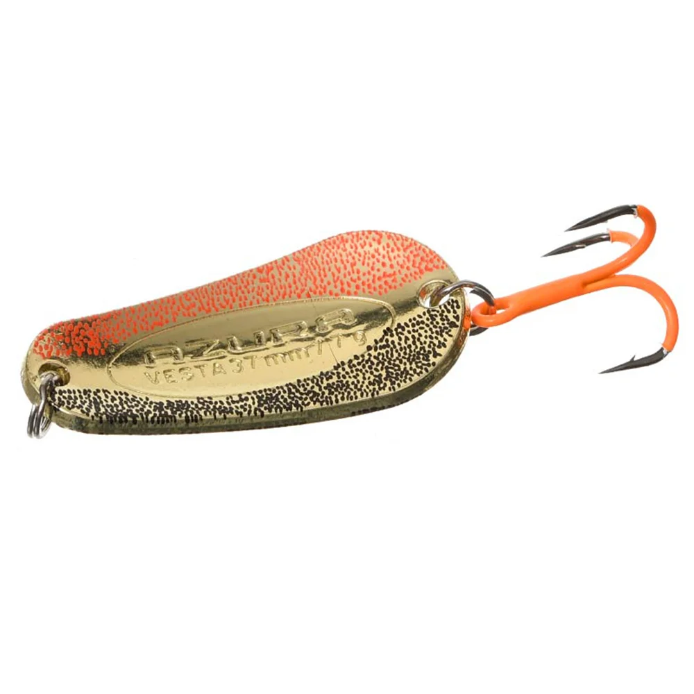 Azura Vesta – настоящий фаворит по ловле хищной и полухищной рыбы. Тело приманки, изготовленное из латуни, имеет небольшие размеры, но довольно высокий удельный вес, что позволяет ловить рыбу на течении и достаточно больших глубинах. При внешне простой форме блесна Azura Vesta отлично держит глубину проводки и обладает уникальной способностью сохранять устойчивость даже на сильном течении. Приманка отлично сбалансирована, выделяется соблазнительной размашистой игрой и прекрасными аэродинамическими характеристиками, позволяющими выполнять дальние и точные забросы. Рифлёная внешняя поверхность создаёт во время проводки мерцающие блики и микрозавихрения воды, вызывающие у хищных рыб неподдельный интерес и провоцируют их на мгновенную атаку. Блесна Vesta оснащена надёжными заводными кольцами и острыми тройниками, способными просечь пасть трофея любой величины. Приманка имеет потрясающую уловистость, что на быстрых, что на медленных проводках, причём, как в условиях быстрых рек, так и на непроточных или слаботекущих водоёмах. В списке её трофеев жерех, голавль, язь, окунь, форель, щука, судак и т.п.