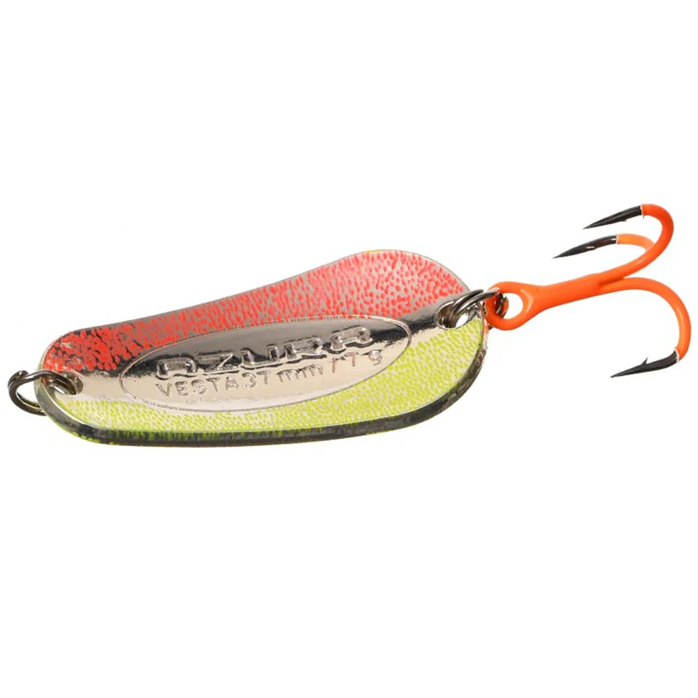 Azura Vesta – настоящий фаворит по ловле хищной и полухищной рыбы. Тело приманки, изготовленное из латуни, имеет небольшие размеры, но довольно высокий удельный вес, что позволяет ловить рыбу на течении и достаточно больших глубинах. При внешне простой форме блесна Azura Vesta отлично держит глубину проводки и обладает уникальной способностью сохранять устойчивость даже на сильном течении. Приманка отлично сбалансирована, выделяется соблазнительной размашистой игрой и прекрасными аэродинамическими характеристиками, позволяющими выполнять дальние и точные забросы. Рифлёная внешняя поверхность создаёт во время проводки мерцающие блики и микрозавихрения воды, вызывающие у хищных рыб неподдельный интерес и провоцируют их на мгновенную атаку. Блесна Vesta оснащена надёжными заводными кольцами и острыми тройниками, способными просечь пасть трофея любой величины. Приманка имеет потрясающую уловистость, что на быстрых, что на медленных проводках, причём, как в условиях быстрых рек, так и на непроточных или слаботекущих водоёмах. В списке её трофеев жерех, голавль, язь, окунь, форель, щука, судак и т.п.