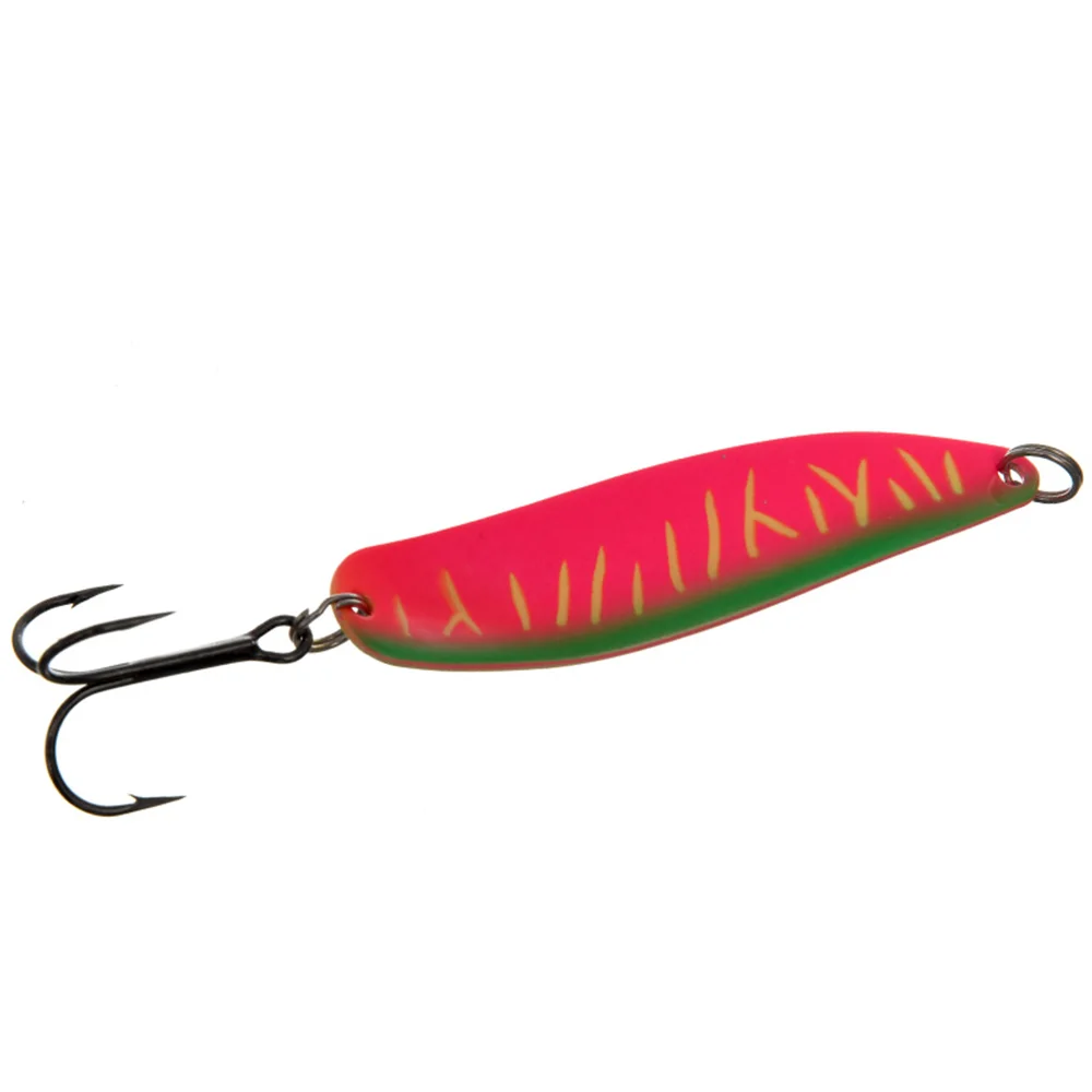 Flagman Stretto – классическая S-образная колеблющаяся блесна, которая подойдет для ловли любой хищной рыбы: от форели до щуки и судака. Сложный профиль блесны имеет множество граней отражения света. Ее движения очень точно имитируют живую рыбу – идеальную потенциальную жертву хищника. Приманка движется с чередующимися волнообразными движениями, вибрациями и боковыми покачиваниями, как настоящая рыба. Причем постоянство игры и характерные движения гарантированы при любой скорости проводки – все это реализовано за счет двойного изгиба блесны. В дополнение ко всему, колеблющиеся блесны Stretto обладают прекрасными полетными качествами. Такие особенности приманок обеспечивают быстрый облов больших участков стоячих вод (щука, судак, окунь), а также гарантируют комфортную ловлю на течении (лосось, голец, форель). Кроме того, крупные модели этих приманок с успехом применяются при ловле троллингом. Блесны комплектуются фирменными кольцами и острейшими тройниками VMС, а разнообразие цветов и размеров Stretto Flagman позволяют выбрать подходящую модель под конкретное место и условия ловли.
