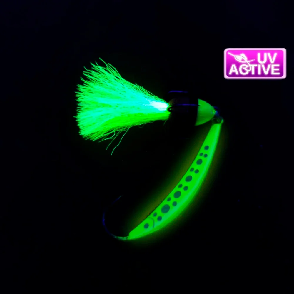 Блесна "Лыжа" прекрасно себя зарекомендовала при ловле пасивного хищника такого как судак, щука, окунь и сом. В позднеосенний и весенний период этой приманкой не против полакомиться и мирные виды рыб: карп, сазан, карась и.т.д. Приманка лыжа изготовлена из качественного свинца, крючки Kumho отличаются превосходной остротой и надежностью. Сама приманка покрыта специальной люминесцентной краской которая светиться в ультрафиолете UV-Active. Особая изюминка блесны в том, что она всегда падает на дно крючком вверх, а плавающая бубышка с люрексом продолжает на паузе покачиваться соблазняя рыбу на поклевку имитирую кормящуюся рыбку. Блесна лыжа очень универсальна и не требовательна к проводке, наилучшие результаты демонстрирует на разной интенсивности ступенчатых анимациях, а также волочение по дну с паузами.