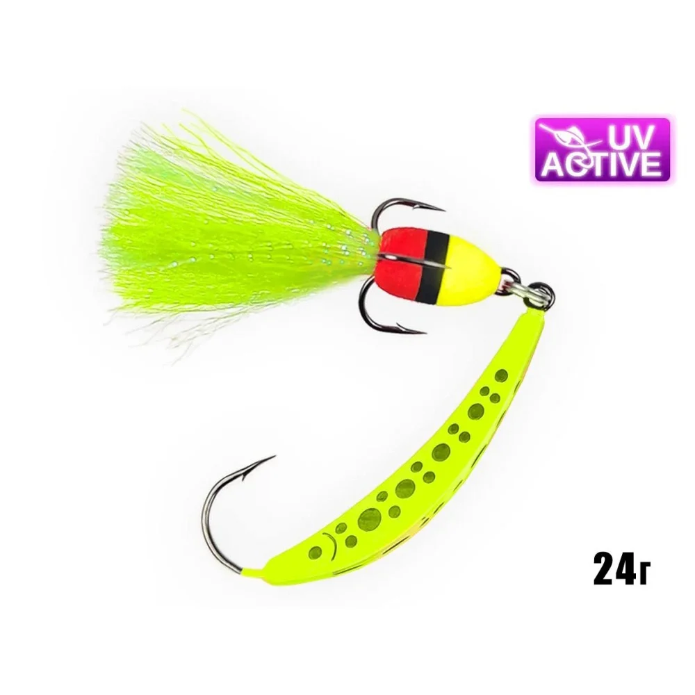 Блесна "Лыжа" прекрасно себя зарекомендовала при ловле пасивного хищника такого как судак, щука, окунь и сом. В позднеосенний и весенний период этой приманкой не против полакомиться и мирные виды рыб: карп, сазан, карась и.т.д. Приманка лыжа изготовлена из качественного свинца, крючки Kumho отличаются превосходной остротой и надежностью. Сама приманка покрыта специальной люминесцентной краской которая светиться в ультрафиолете UV-Active. Особая изюминка блесны в том, что она всегда падает на дно крючком вверх, а плавающая бубышка с люрексом продолжает на паузе покачиваться соблазняя рыбу на поклевку имитирую кормящуюся рыбку. Блесна лыжа очень универсальна и не требовательна к проводке, наилучшие результаты демонстрирует на разной интенсивности ступенчатых анимациях, а также волочение по дну с паузами.