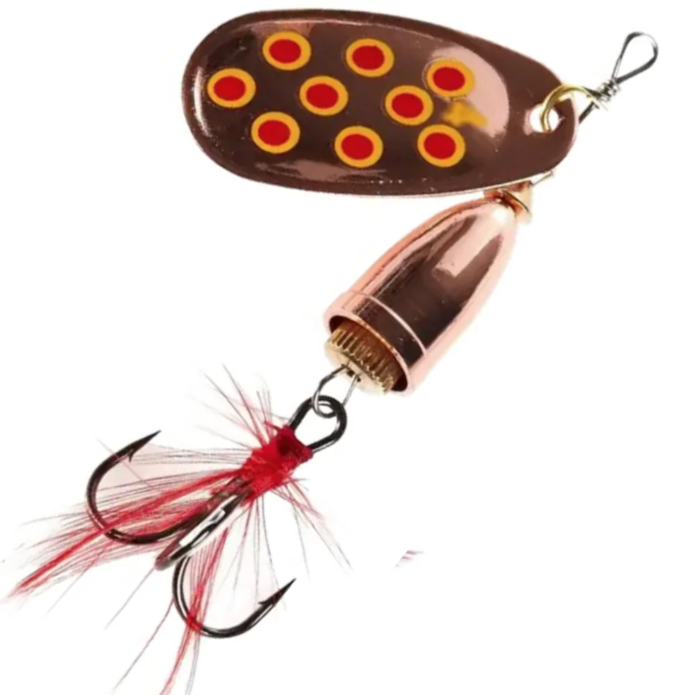 Блесна Lucky John Bell Spin – типичная вращалка с лепестком классической типа «comet». Такая конфигурация одинаково хорошо работает, как на умеренном течении, так и в стоячей воде. Приманка оснащается составным сердечником в форме пули. Внутренняя часть сердечника жостко соединена с осью блесны, благодаря чему уменьшается эффект перекручивания лески во время вращения лепестка. Кроме того, поперечные колебания оси при движении блесны заставляют части сердечника соударяться друг о друга и издавать тем самым ритмичные звуки, которые дополнительно привлекают внимание рыбы. Яркая мушка на тройном крючке создает особую привлекательность приманки. Модельный ряд представлен несколькими размерами и расцветками, позволяющими ловить на Bell Spin практически любую хищную и всеядную рыбу. Изделия производятся с очень высоким качеством, проверены множеством разноплановых испытаний и получили массовое признание среди рыболовов во всем мире.