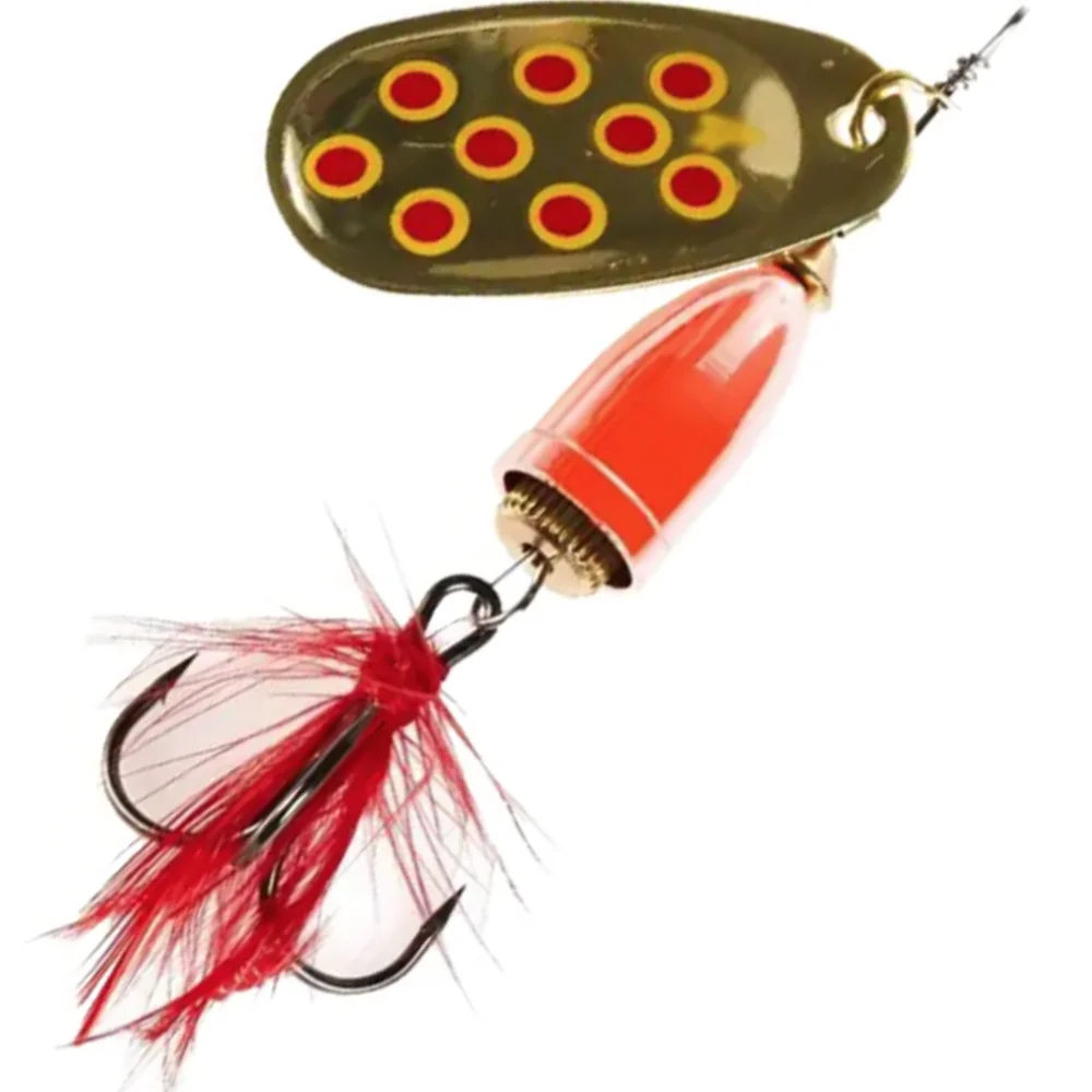 Блесна Lucky John Bell Spin – типичная вращалка с лепестком классической типа «comet». Такая конфигурация одинаково хорошо работает, как на умеренном течении, так и в стоячей воде. Приманка оснащается составным сердечником в форме пули. Внутренняя часть сердечника жостко соединена с осью блесны, благодаря чему уменьшается эффект перекручивания лески во время вращения лепестка. Кроме того, поперечные колебания оси при движении блесны заставляют части сердечника соударяться друг о друга и издавать тем самым ритмичные звуки, которые дополнительно привлекают внимание рыбы. Яркая мушка на тройном крючке создает особую привлекательность приманки. Модельный ряд представлен несколькими размерами и расцветками, позволяющими ловить на Bell Spin практически любую хищную и всеядную рыбу. Изделия производятся с очень высоким качеством, проверены множеством разноплановых испытаний и получили массовое признание среди рыболовов во всем мире.