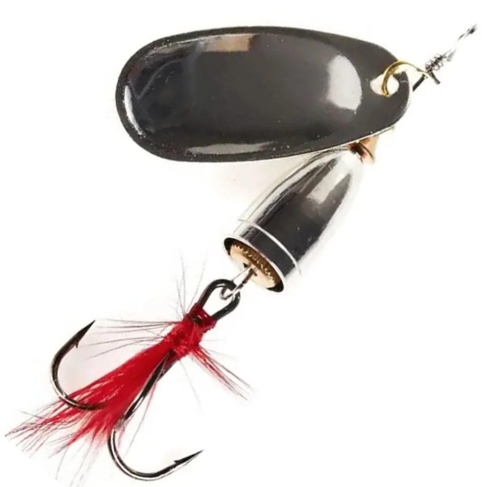 Блесна Lucky John Bell Spin – типичная вращалка с лепестком классической типа «comet». Такая конфигурация одинаково хорошо работает, как на умеренном течении, так и в стоячей воде. Приманка оснащается составным сердечником в форме пули. Внутренняя часть сердечника жостко соединена с осью блесны, благодаря чему уменьшается эффект перекручивания лески во время вращения лепестка. Кроме того, поперечные колебания оси при движении блесны заставляют части сердечника соударяться друг о друга и издавать тем самым ритмичные звуки, которые дополнительно привлекают внимание рыбы. Яркая мушка на тройном крючке создает особую привлекательность приманки. Модельный ряд представлен несколькими размерами и расцветками, позволяющими ловить на Bell Spin практически любую хищную и всеядную рыбу. Изделия производятся с очень высоким качеством, проверены множеством разноплановых испытаний и получили массовое признание среди рыболовов во всем мире.