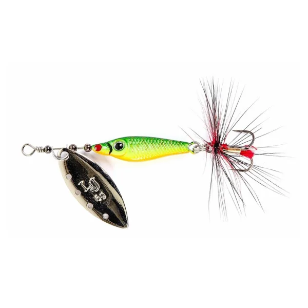 Trian Blade Long-оригинальная серия вращающихся блесен Lucky John с классической формой типа «ивовый лепесток». В этих приманках используются современные конструктивные решения, которые обеспечивают надежную и стабильную игру блесен, и делают их очень привлекательными для любой хищной рыбы. Вращающийся лепесток сделан из латуни и обладает устойчиво-ровным движением при различных способах и скоростях проводки. Отверстия в лепестке создают дополнительные вибрации наиболее привлекательные для хищника. При вращении угол отклонения лепестка составляет 30 градусов, что дает возможность работать приманке на сильном течении. Сердечник приманок сделан из тяжелого сплава, обеспечивая дополнительную дальность при забросе блесны, и имеет выверенную геометрическую форму сердечника, позволяющую до минимума сократить перекручивание шнура во время работы приманки. На всех тройниках связана яркая мушка, которая служит дополнительным раздражителем для рыбы и обеспечивает ровное вращение лепестка при самой медленной проводке.