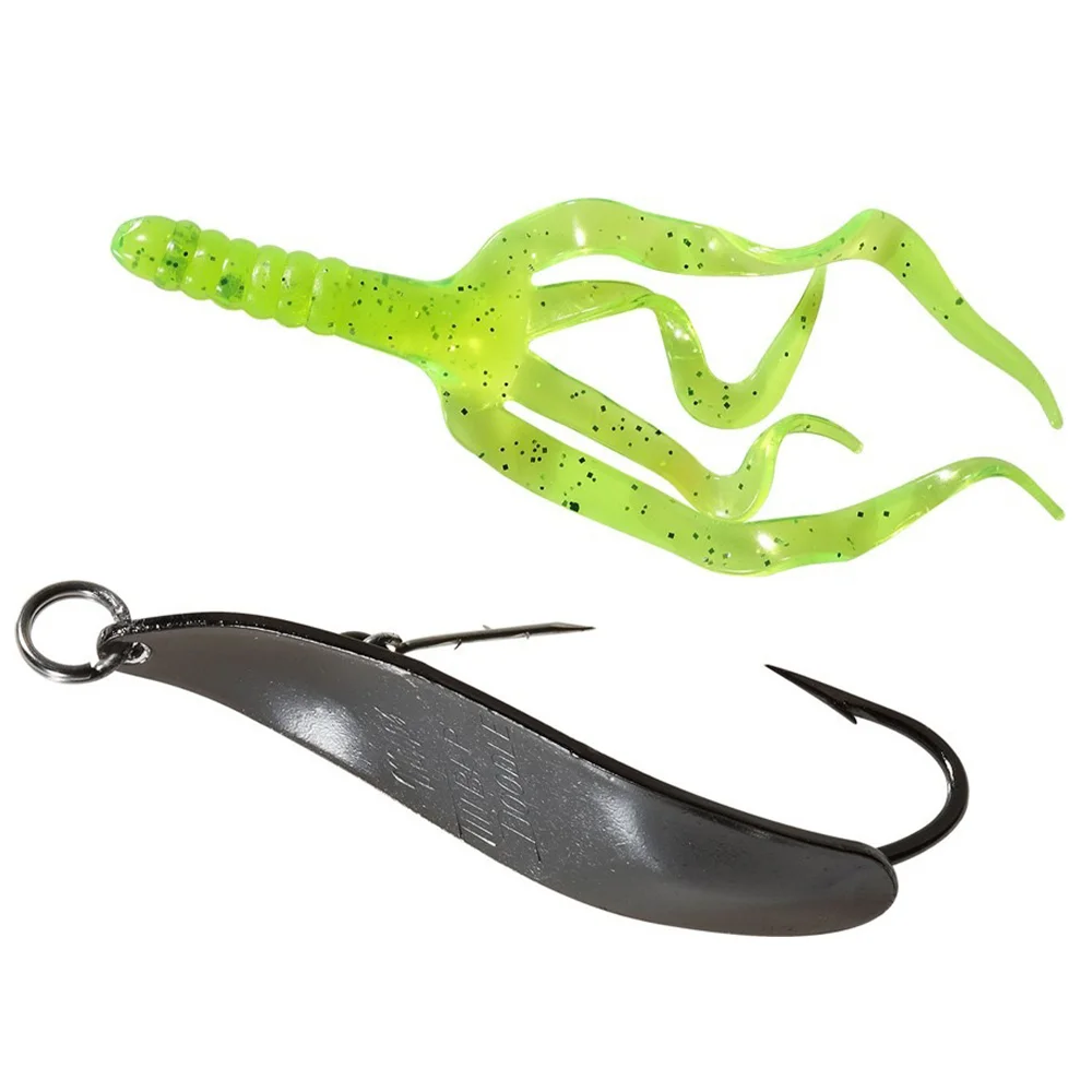 Колеблющиеся блесны Mepps Timber Doodle – специальные приманки для ловли в крепких местах. Форма тела блесны заимствована от известной модели Syclops, только крючок используется одинарный и жестко закрепленный в задней части приманки. На одной линии с крючком в средней части блесны располагается шпилька с зазубринами, на которую насаживается силиконовый твистер. Задняя часть твистера крепится на крючке, таким образом крючок становится защищенным от зацепов и легко освобождается для засечки при хватке рыбы. Твистеры поставляются в комплекте с блесной и в дальнейшем могут отдельно приобретаться. Предлагаются модели, имеющие разную массу размер и расцветку блесны и силиконовых твистеров, что позволяет рыболову подобрать приманку исходя из конкретных текущих потребностей, продиктованных такими условиями ловли, как глубина, сила течения, прозрачность воды, вид рыбы и многими другими факторами.