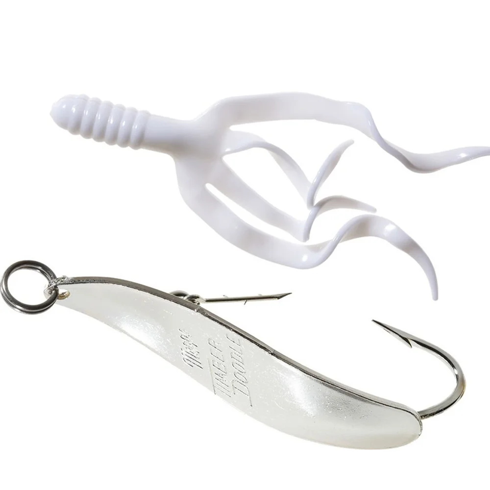 Колеблющиеся блесны Mepps Timber Doodle – специальные приманки для ловли в крепких местах. Форма тела блесны заимствована от известной модели Syclops, только крючок используется одинарный и жестко закрепленный в задней части приманки. На одной линии с крючком в средней части блесны располагается шпилька с зазубринами, на которую насаживается силиконовый твистер. Задняя часть твистера крепится на крючке, таким образом крючок становится защищенным от зацепов и легко освобождается для засечки при хватке рыбы. Твистеры поставляются в комплекте с блесной и в дальнейшем могут отдельно приобретаться. Предлагаются модели, имеющие разную массу размер и расцветку блесны и силиконовых твистеров, что позволяет рыболову подобрать приманку исходя из конкретных текущих потребностей, продиктованных такими условиями ловли, как глубина, сила течения, прозрачность воды, вид рыбы и многими другими факторами.