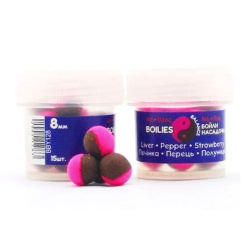 Бойли насадочні Інь-янь Печінка•Перець•Полуниця 8 мм 15 шт