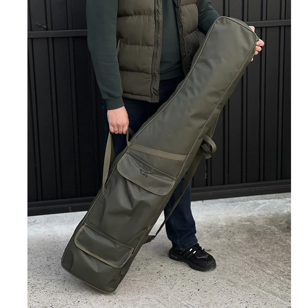 Чехол для удилищ двухсекционный 130см . Ткань крепкая водостойкая. Надежные замки. Можно нести его в руке или плече. Длина шлейки регулируется. Есть два боковых кармана. Карман сеточка внутри. Также есть крепление для сачка.