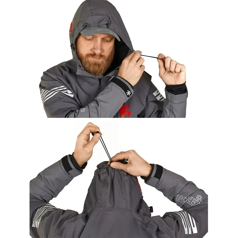 • Мембранный материал NORTEX® с показателями 9000mm/ 6000g/m²/24h + полностью проклеенные швы - обеспечивают надежную защиту от осадков и ветра!