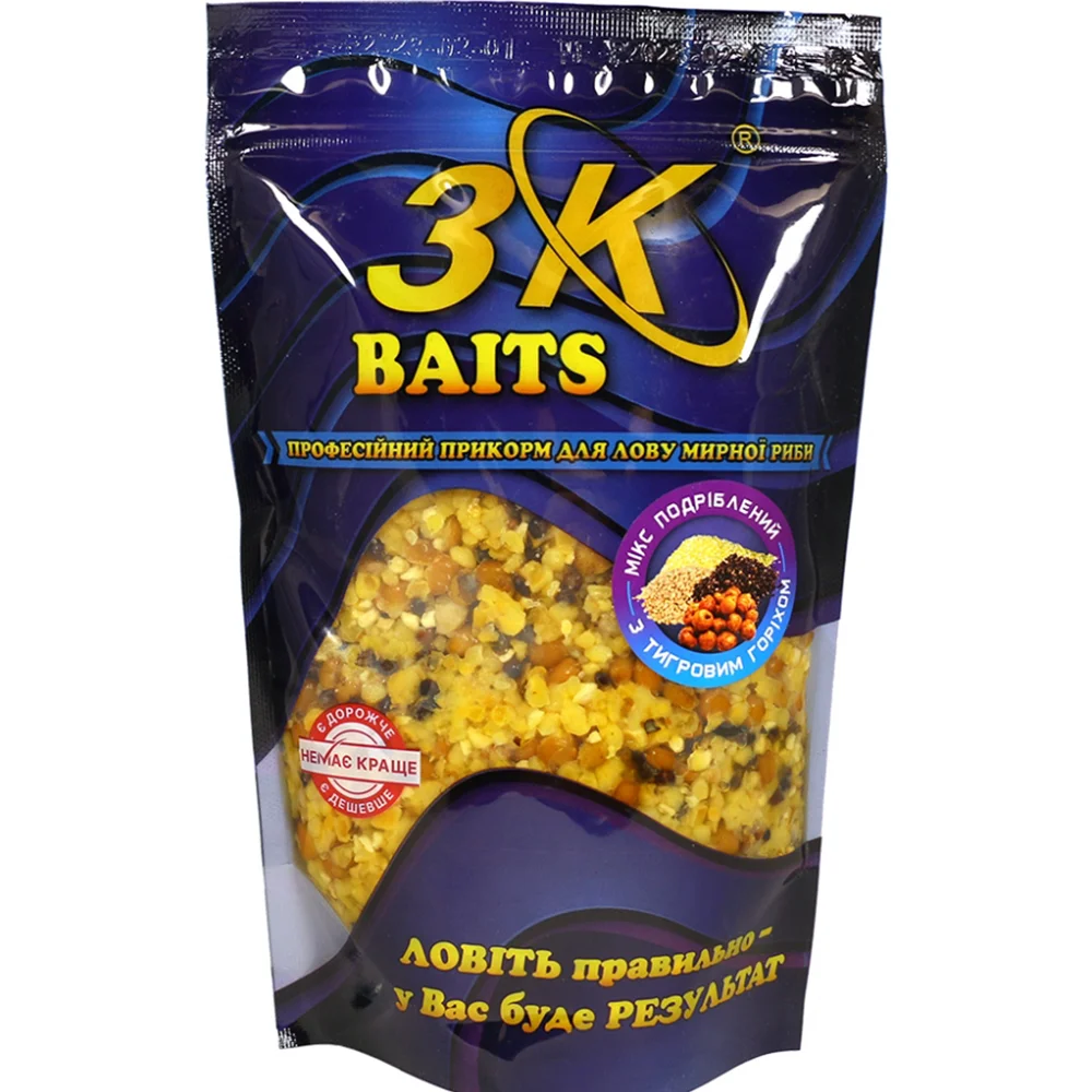 Смесь пяти видов "приваренных" зерен - "Дробленый Зерновой МИКС" владеет естественным приманиванивающим свойством и используется как самостоятельный продукт, так и в комбинации с сухими смесями "KATYUSHA", "Мамалыгой", пеллетсом, бойлесом и при правильном применении - в мешочках ПВА, а также делает прикормочную смесь более разнообразной и привлекательной для рыбы. "Дробленый Зерновой МИКС" позволяет прикармливать большие участки ловли и будет быстро идентифицирован рыбой с помощью аромы нутритивных жидкостей "Bambina" или "CSL Complex". Рыба не насыщается им слишком быстро и вынуждена оставаться в прикормочной зоне, собирая зерна друг за другом. Смесь состоит из дробленых зерен кукурузы, конопли, сорго, пшеницы и тигрового ореха. Является эффективным прикормом, как для холодной так и для теплой воды.