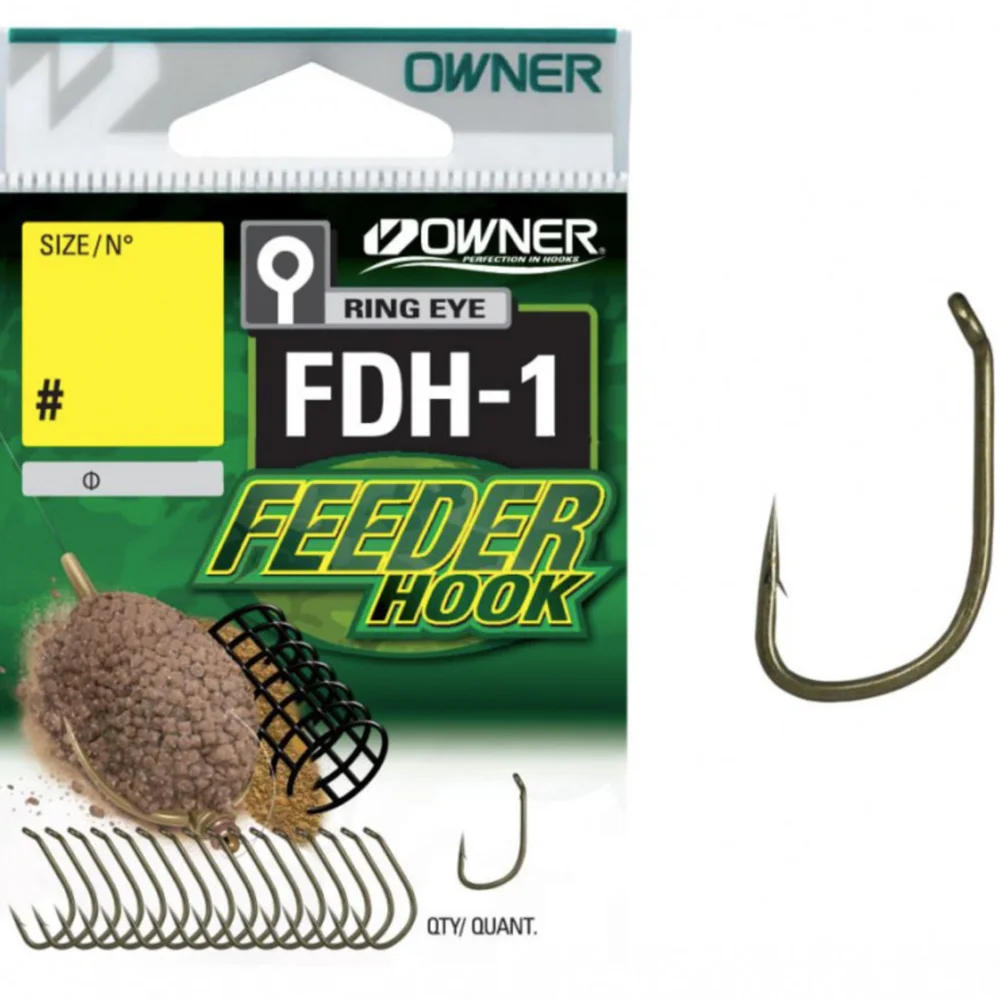 Owner Feeder Hook FDH-1 Amano Tenkara With Eye 56941 – новейшая серия мощных и прочных крючков, изготовленных из высокоуглеродистой стали и разработанных для фидерной ловли крупной сильной рыбы. Крючки Owner 56941 имеют широкий загиб wide gape, кованый поддев, укороченное цевье с загнутым внутрь колечком для привязывания, прямое острое жало с заточкой Super Needle Point и защитное покрытие коричневого цвета. Owner Feeder Hook FDH-1 – отличная модель для фидерной ловли карпа и всех видов белой рыбы на насадки как животного, так и растительного происхождения. Это отличный выбор для фидерной ловли с использованием небольших поп-апов на волосе или же для насаживания на крючок, например, сладкой кукурузы и прочих натуральных насадок. Загнутое внутрь ушко позволяет расположить крючок нужным образом относительно поводка и насадки, а острейшее жало и аккуратная бородка гарантируют эффективную подсечку и надёжное удержание трофея, с минимальным нанесением ему повреждений. Размерный ряд крючков в серии Owner Feeder Hook FDH-1 Amano Tenkara – от №14 до №6.