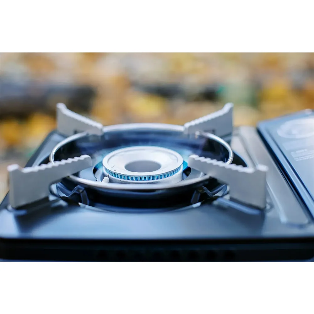Особенности: - безопасная конструкция – плита оснащена специальным предохранителем, который отсекает поток газа, когда возникает неисправность (в основном это касается проблем с газовым картриджем из-за давления, не подходящего для работы плиты) - проста в использовании и мощна в работе - подставка для посуды позволяет размещать на плите как малые, так и большие объемы кастрюль, чашек и другой посуды - отсек для газового картриджа имеет вентиляцию, что предотвращает повышение температуры внутри плиты - встроенный пьезоэлемент для быстрого и удобного поджигания - возможность регулировки пламени - в комплекте идет удобный пластиковый кейс для транспортировки и хранения - плита изготовлена во Вьетнаме по японской технологии на высокоточном оборудовании