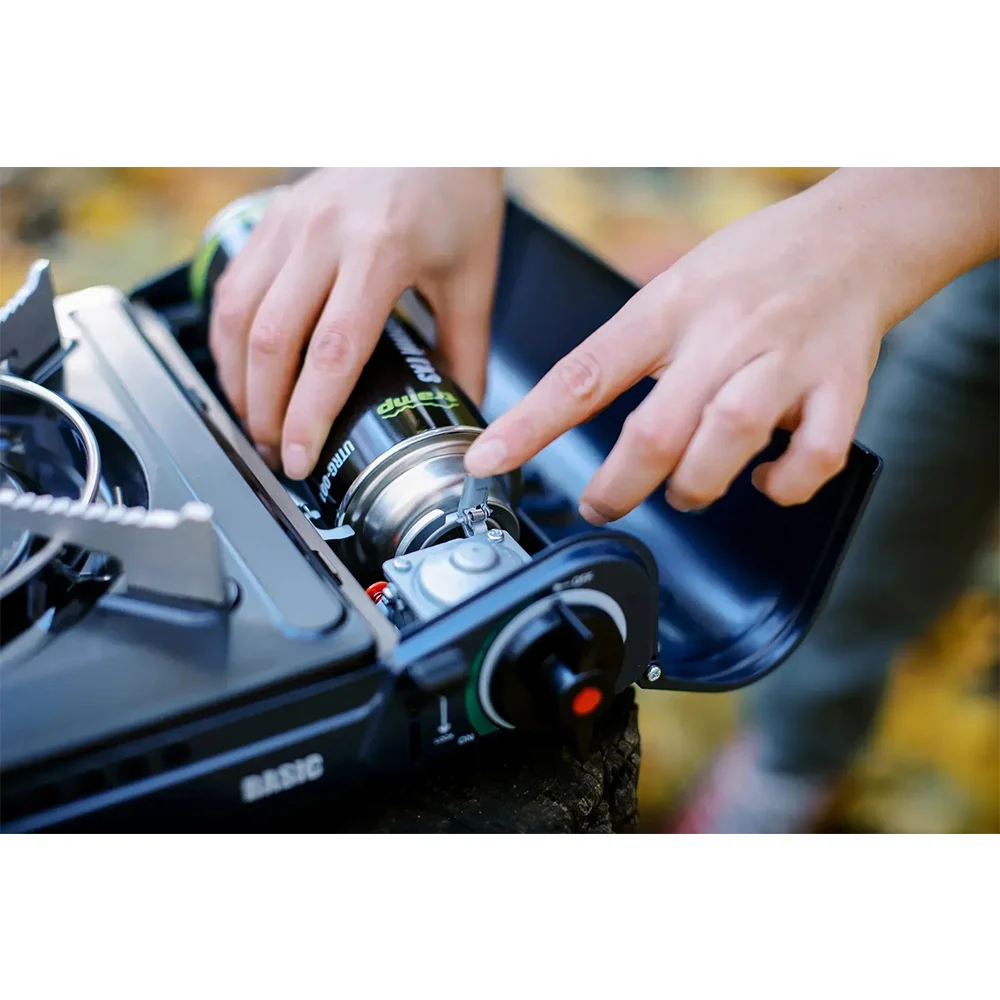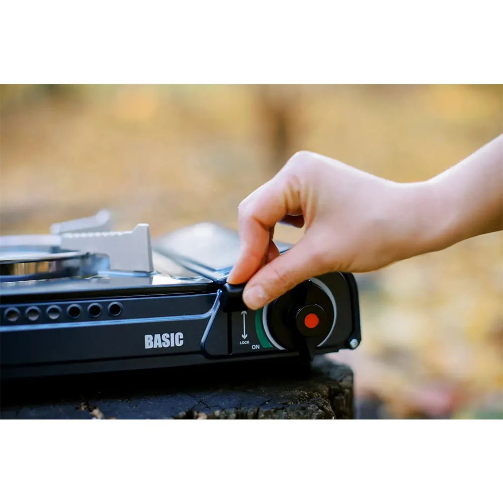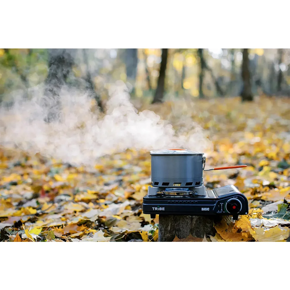 Туристическая газовая плита Tribe Basic – базовая в линейке портативных плит Tribe, работает от стандартного цангового (штокового) газового картриджа (баллона).
