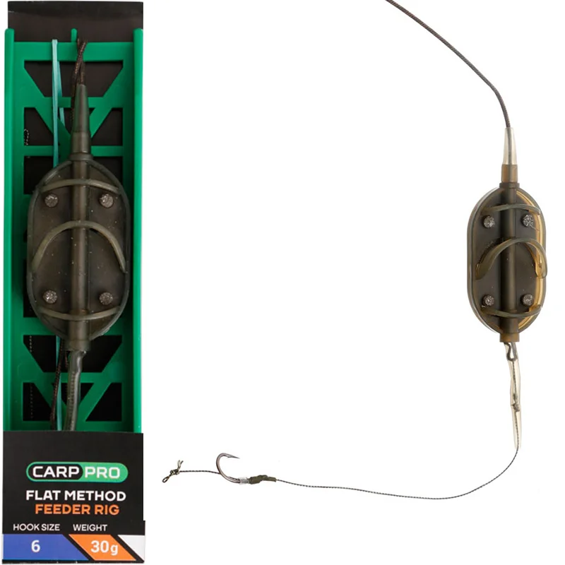 Готовое к работе карповое оснащение "Flat Method Feeder Rig", монтируется на ледкоре Climax(Germany) 35-45 lb, крючок - Kumho(Korea), поводковый материал - Climax(Germany) 25 lb. Кормушка всегда падает на дно грузилом вниз, а подкормкой вверх. Монтаж с глухой фиксацией кормушки при поклевке способствует самоподсечке рыбы. Поводок используется с волосяной крепью насадки.