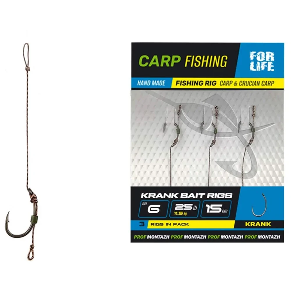 Готовый бойловый поводок KRANK BAIT RIGS - оснащен популярной моделью крючка формы KRANK. Крючок производится по заказу на заводе Kumho (Korea), отличается исключительной остротой и надежностью. Специальное покрытие PTFE, надежно защищает крючок от появления ржавчины и помогает ему оставаться острым долгое время. Особая изогнутая форма крючка обеспечивает не только превосходную реализация поклевок, но и надежное удержание рыбы во время всего процесса вываживания. Поводок KRANK BAIT RIGS подходит под любой тип насадок: pop-ups, бойлы, вафтерсы, сбалансированные приманки (balance), имитация кукурузы и.т.д. Поводок изготовлен на качественном, мягком поводочном материале Climax (Germany) с разрывной нагрузкой 25Lb.