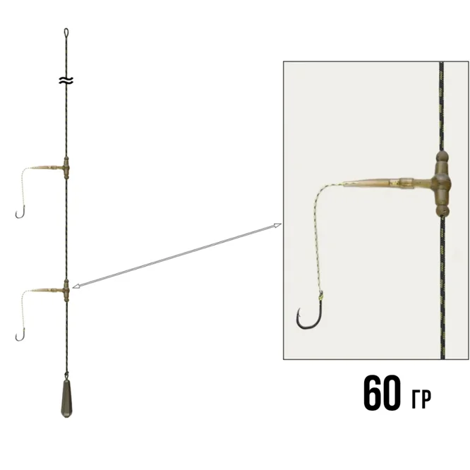 Готовый монтаж Карась-вертолет на 2 крючка это простой и эффективный монтаж для ловли карася, карпа, плотвы или леща. Монтаж собран на качественном лидкоре длиной 35см, использование лидкора предотвращает перекручивание и защищает весь монтаж от повреждений о ракушку или камни. Оснащается 2 острыми крючками Kumho (Korea) на боковых отводах типа вертолет, длина поводков составляет 4см. Крючок с широким поддевом позволяет использовать как животные насадки типа навозных червей, опарыша или мотыля, так и зерновые насадки в виде кукурузы, пшеницы, мастырки, разного теста или плавающей насадки Floating Ball. Груз окрашен в камуфляжный цвет поэтому не настораживает пугливую рыбу.