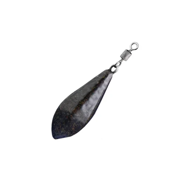 Одна из самых популярных форм грузил. Центр тяжести вынесен вперед. Благодаря наличию граней надежно фиксируется на дне, не скатывается с наклонных участков. Подходит для ловли на дальних и сверхдальних дистанциях.