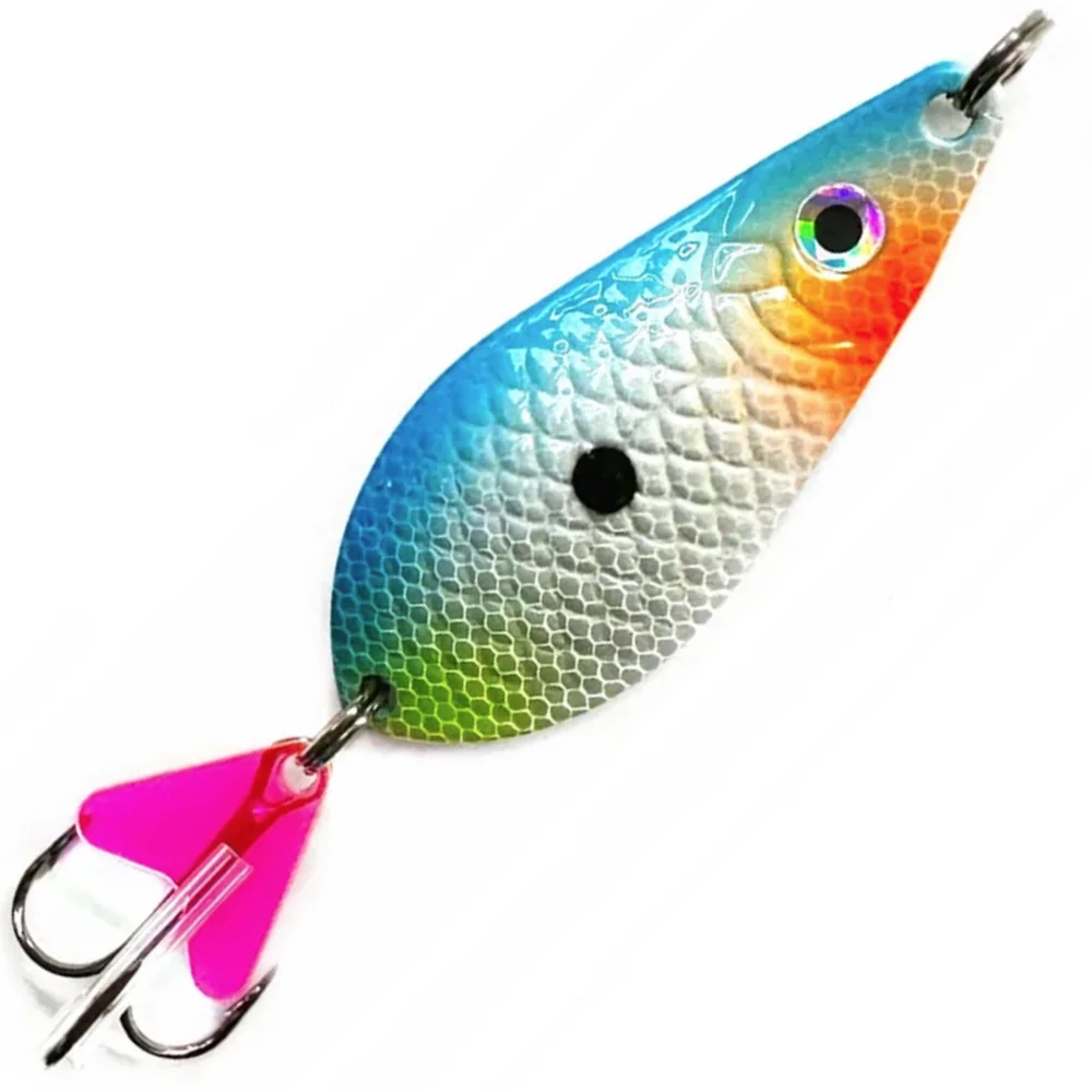 Особенностью блесны "Атом" является её уникальная, каплевидная форма с острыми краями, которая позволяет ей быстро и глубоко погружаться в воду, выполняя живые и резкие движения. Эти движения идеально имитируют поведение испуганной или раненой рыбешки, что не может не привлечь внимание хищников.