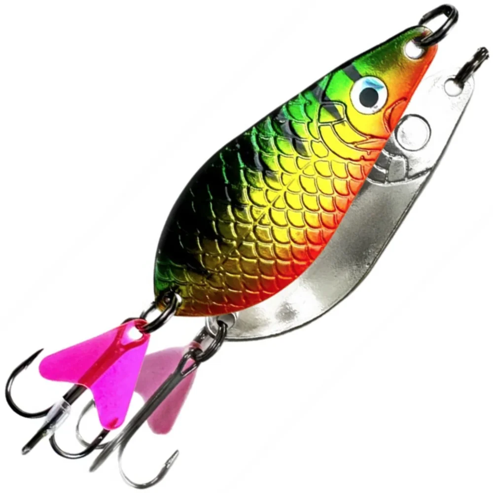 Особенностью блесны "Атом" является её уникальная, каплевидная форма с острыми краями, которая позволяет ей быстро и глубоко погружаться в воду, выполняя живые и резкие движения. Эти движения идеально имитируют поведение испуганной или раненой рыбешки, что не может не привлечь внимание хищников.