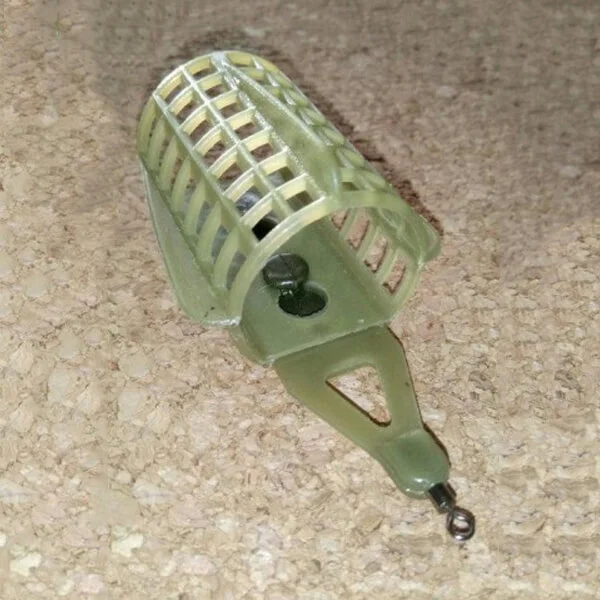 Пластиковая фидерная кормушка закрытого типа, со съемным свинцовым грузом. На кормушки есть специальные крылья, препятствующие перекачке кормушки по дну водоема.