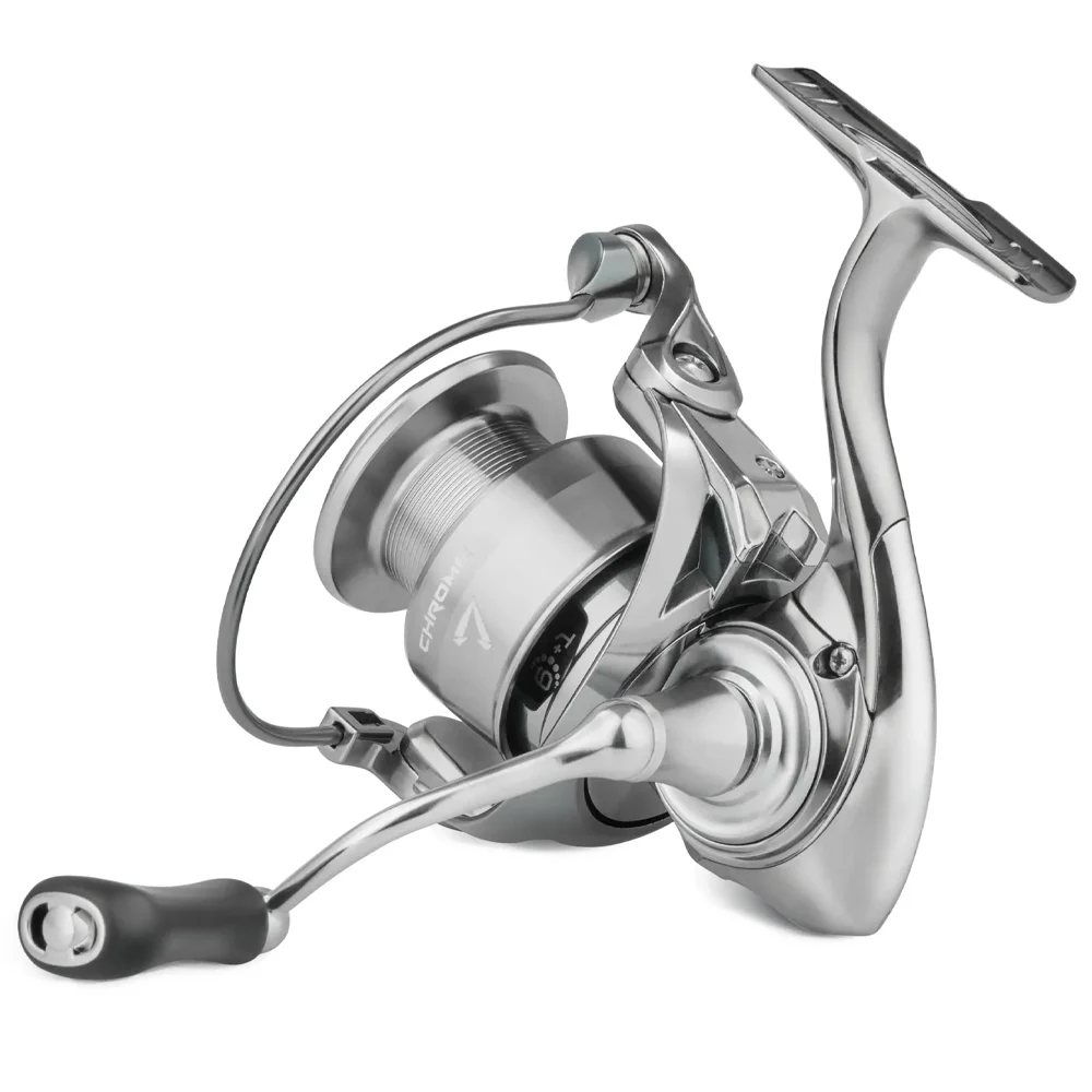 Select Chrome – это высококачественная, современная, надежная и эстетически привлекательная спиннинговая катушка, которая удовлетворит требования как начинающих, так и профессиональных рыболовов. Корпус катушки изготовлен из прочного ударостойкого пластика. За плавный ход и равномерную укладку шнура отвечает один роликовый подшипник и шесть шарикоподшипников, два из которых находятся в ролике лесоукладывателя. Катушка Chrome оснащена алюминиевой шпулей со скошенным передним краем. В зависимости от модификации катушки, шпуля может быть глубокой или мелкой. Металлическая ручка вкручивается непосредственно в ведущую шестерню, что обеспечивает плотное соединение и минимизирует люфт. К тому же в данной катушке отсутствует переключатель реверса, что делает ее конструкцию проще и, соответственно, надежнее. Линейка катушек Select Chrome доступна в четырех типоразмерах: 1500, 2000, 2500 и 4000.