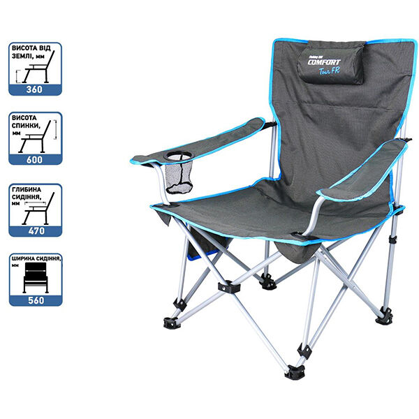 Транспортувальний розмір 900х240мм Матеріал 600 D поліестер Вага 2.6кг Каркасталь труба 19мм Глибина 47см Ширина 56см Висота спинки 60см Навантаження до 120кг