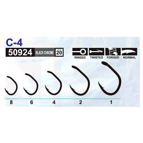 Owner 50924 (С-4) Carp Aya – крючок с загнутым внутрь жалом, кованым поддевом и слегка повернутым внутрь кольцом. Жало слегка отогнутое в сторону относительно плоскости крючка. Отлично подходит для использования в монтажах, предназначенных для подачи как тонущих и всплывающих наплавок, так и насадок нейтральной плавучести. Загнутое внутрь проушина позволяет расположить крючок нужным образом относительно поводка и насадки, а особая форма жала обеспечивает отличное засекание рыбы и крепкое удержание ее при выведении. Обладает защитным покрытием BlackChrome (BC).