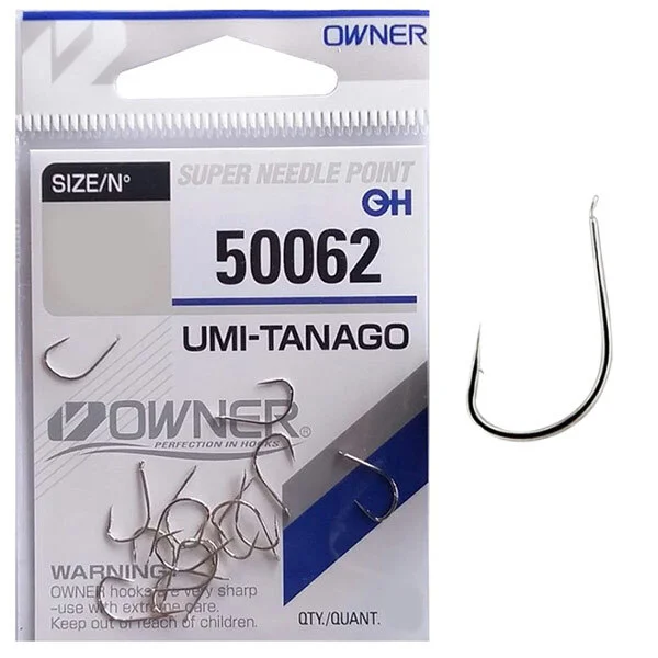 Owner Umi-Tanago 50062 – серия тонких одинарных крючков из высокоуглеродистой стали с лопаткой и кованым поддевом. Owner Umi-Tanago рекомендуется для ловли рыбы донными и поплавковыми снастями на объемные насадки. Umi-Tanago имеют широкий загиб, нормальной длины струйки, защитное покрытие цвета White. Острое жало с аккуратной бородкой гарантирует эффективную подсечку и содержание рыбы.