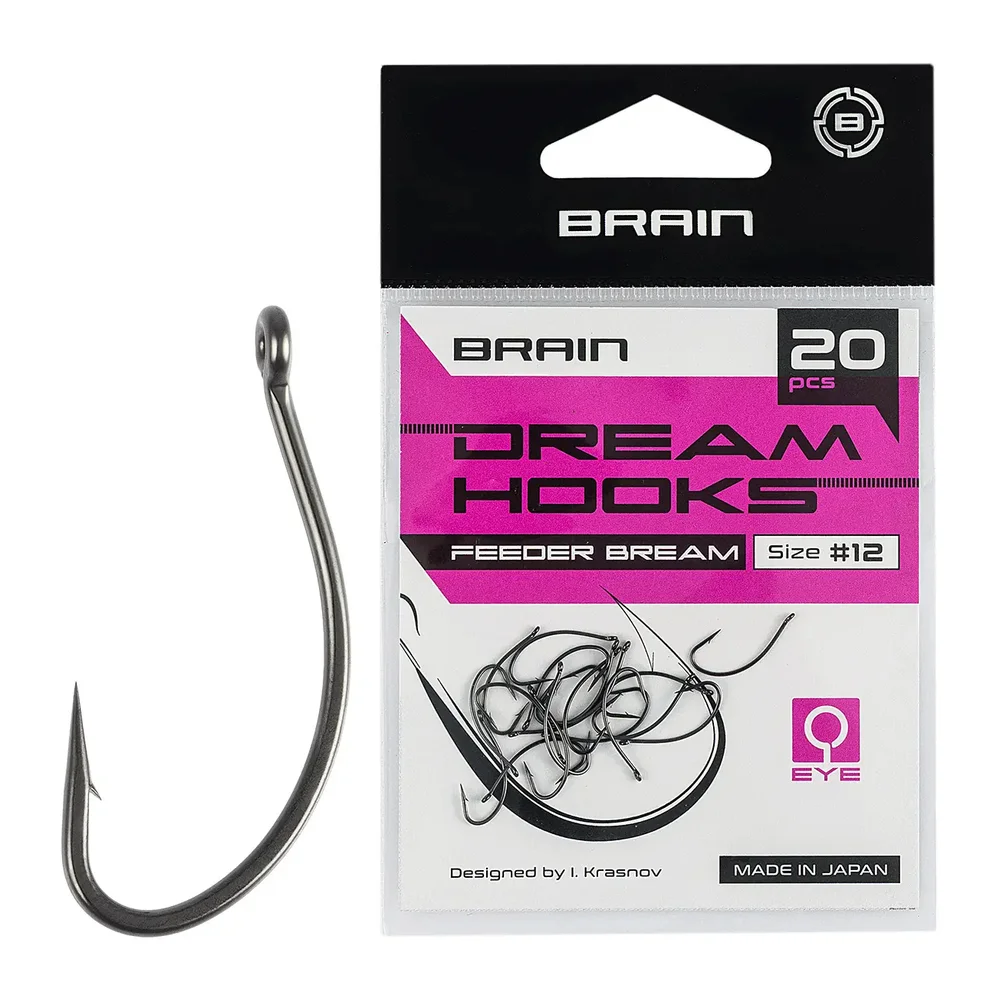 Brain Dream Hooks — авторская серия крючков для фидерной рыбалки, разработанная для достижения наилучших результатов в любых условиях. Крючки изготовлены в Японии и имеют премиальную заточку, что гарантирует высокое качество и надежность. eeder Bream — модель с длинным жалом и скругленным цевьем, специально разработанная для ловли на объемные наживки, такие как черви или «бутерброды». Этот крючок идеально подходит для осторожной рыбы, благодаря своей конструкции он обеспечивает надежную подсечку и удержание наживки. Доступен в размерах от №14 до №6.