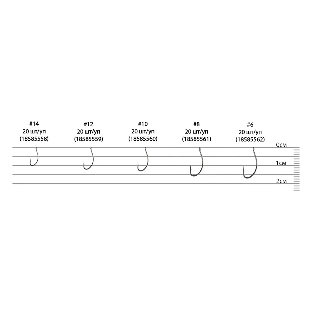Характеристики товара: Тип гачка: Одинарний Номер гачка, №: 14 Кількість в упаковці, шт: 20 Длина общая, мм: 10 Цвет товара: Темно-сірий Вид оснащення: Гачок