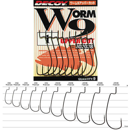 Decoy Worm 9 Upper Cut – серия офсетных крючков с широким и удлиненным поддевом. Сочетают в себе положительные качества классических «прямых» офсетников для червей с офсетниками типа wide gap. Удлиненный поддов позволяет использовать их с длинными приманками – червями, составами, виброхвостами с длинным телом. Но, в отличие от классических прямых офсетников, жало крючка располагается параллельно телу приманки, а широкий поддов позволяет насаживать приманки с довольно толстым телом. Изготовлены из достаточно тонкой, но прочной и упругой стальной проволоки. Широкая размерная линейка позволит выбрать крючок для прелестей практически любых размеров. Особенно актуально наличие ультралайтовых размеров: №6 и №4. Отлично подходят для оснащения приманок типа Reins G-tail Saturn и Reins Swamps.