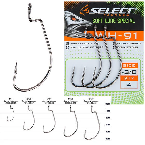 Select WH-91 – самый острый офсетный крючок с глубоким поддевом. Идеально подойдет для оснащения силиконовых приманок с объемным телом, получая таким образом монтаж «неприцепки», который будет обречен при ловле в коряжниках, траве и на флангах, поросших раковиной. они не подведут при ловле даже самой большой рыбы.