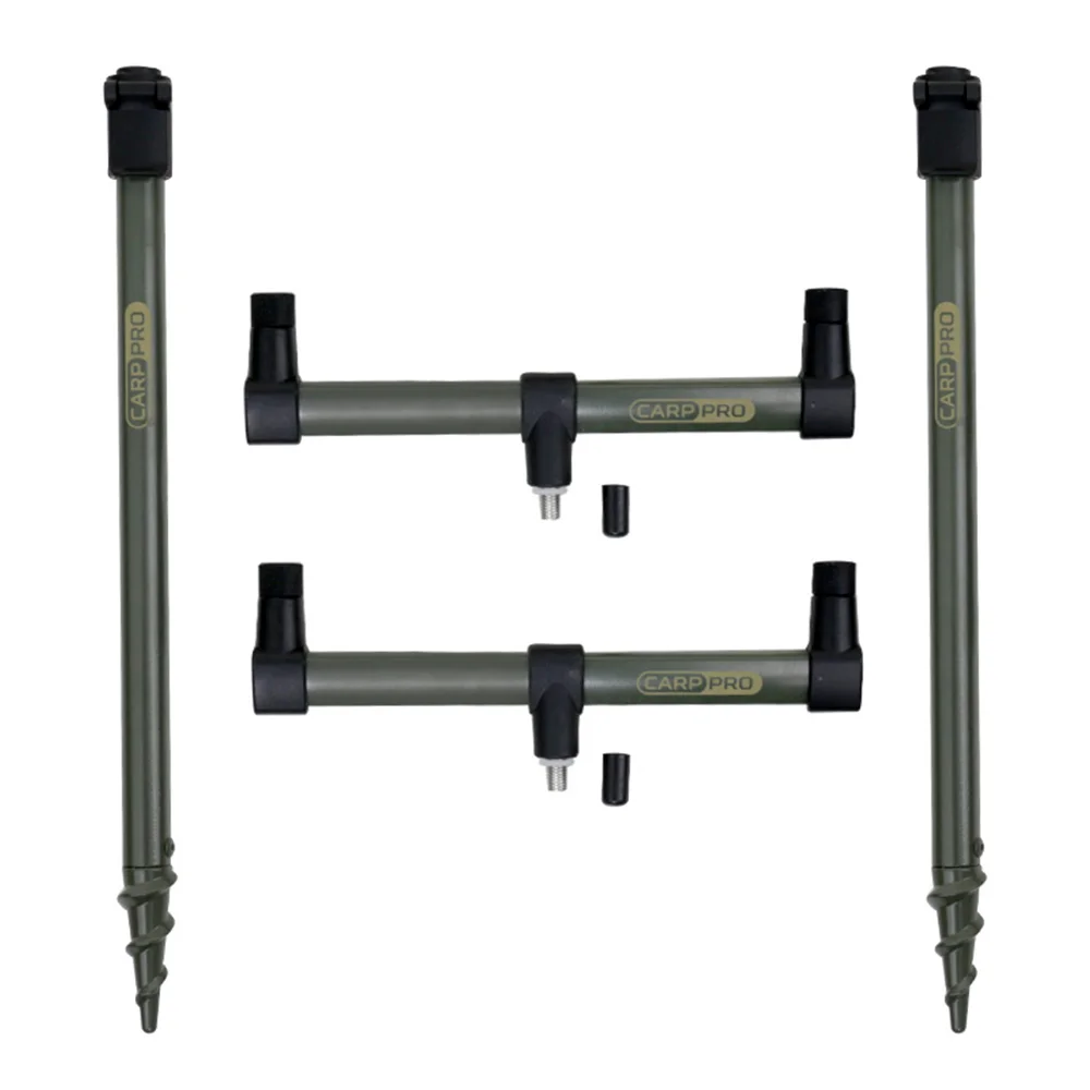 Carp Pro Buzz & Sticks Kit In Bag – компактный набор из двух стоек и двух буз-баров для карповой ловли. Телескопические стойки оснащены специальными заостренными наконечниками, при помощи которых легко ввинчиваются в грунт. Буз-бары рассчитаны на два удилища. Имеют контргайки для фиксации электронных сигнализаторов поклевки и держателей комля. Buzz & Sticks Kit In Bag поставляется в удобной непромокаемой сумке на молнии. Содержимое закрепляется внутри сумки при помощи липучек. Сумка оснащена ручками для переноски.