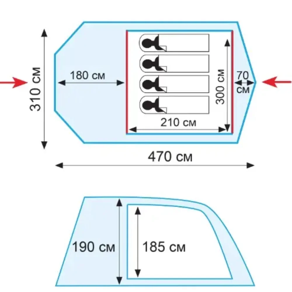 - Двухслойная кемпинговая палатка с двумя входами, большим тамбуром