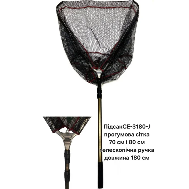 Підсак телескопічний трикутний CE 3180 70 J, чорна прогумована сітка
