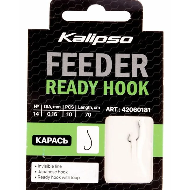 Kalipso Ready Hook - это готовый поводок, созданный специально для ловли трех популярных видов рыб - леща, карася и карпа. Благодаря своему удобству и легкости монтажа, Kalipso Ready Hook экономит время, позволяя сосредоточиться на самой ловле. покрытием, обеспечивающим долговечность и надежность, а также леску invisible line, обеспечивающую минимальную видимость в воде и увеличивающую вероятность успешной охоты на рыбу.