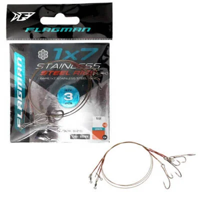 Поводки из семижильного стального тросика оснащены вертлюжками и специальными двойниками, состоящими из двух крючков разной длины, с разной шириной поддева. Предназначены для использования в оснастках при ловле на черенки. Поводки не подвержены коррозии, проволочные бандажи на петлях отличаются надежностью и аккуратностью. Тип – плетеный Материал – нержавеющая сталь Количество в упаковке – 3 шт. Цвет - Brown