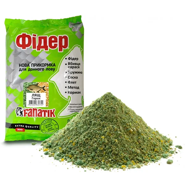 Прикормка Fanatik Фідер Лящ - Горох, 900 гр Має яскраво виражений світлий колір і аромат гороху